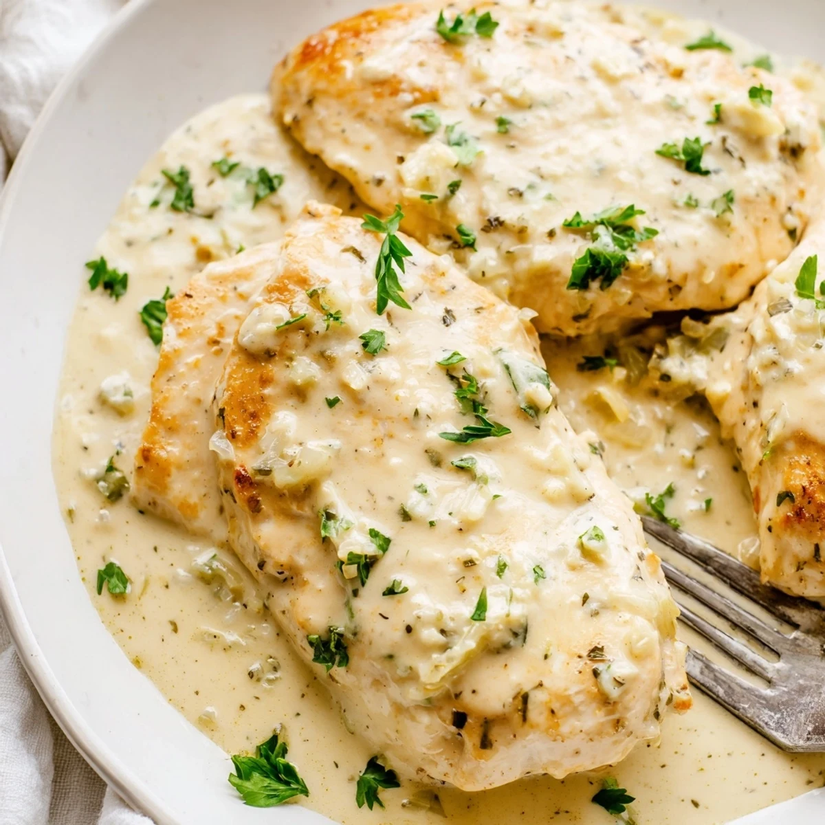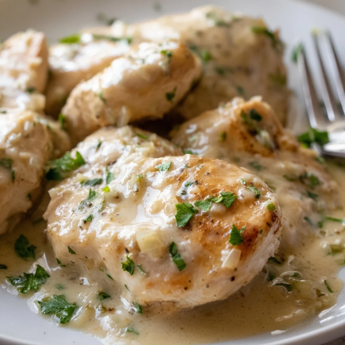This elegant yet simple dish features golden chicken breasts cooked in a velvety sauce made with heavy cream, fresh garlic, and aged Parmesan. The entire preparation comes together in one skillet, making cleanup effortless while developing deep, savory flavors. Each bite delivers tender meat coated in the luxurious garlic-infused cream, finished with fresh herbs for brightness. Perfect served over mashed potatoes, pasta, or crusty bread to soak up every drop of the sauce.