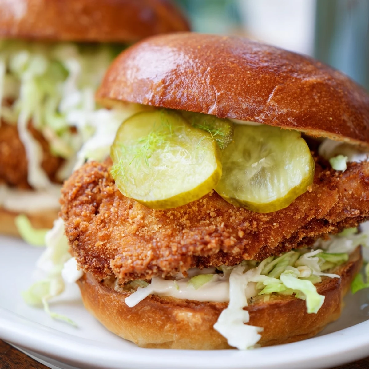- Toast those brioche buns until golden, then layer with sauce, crisp lettuce, hot chicken, and pickles. Serve them while the chicken is still audibly crunchy.