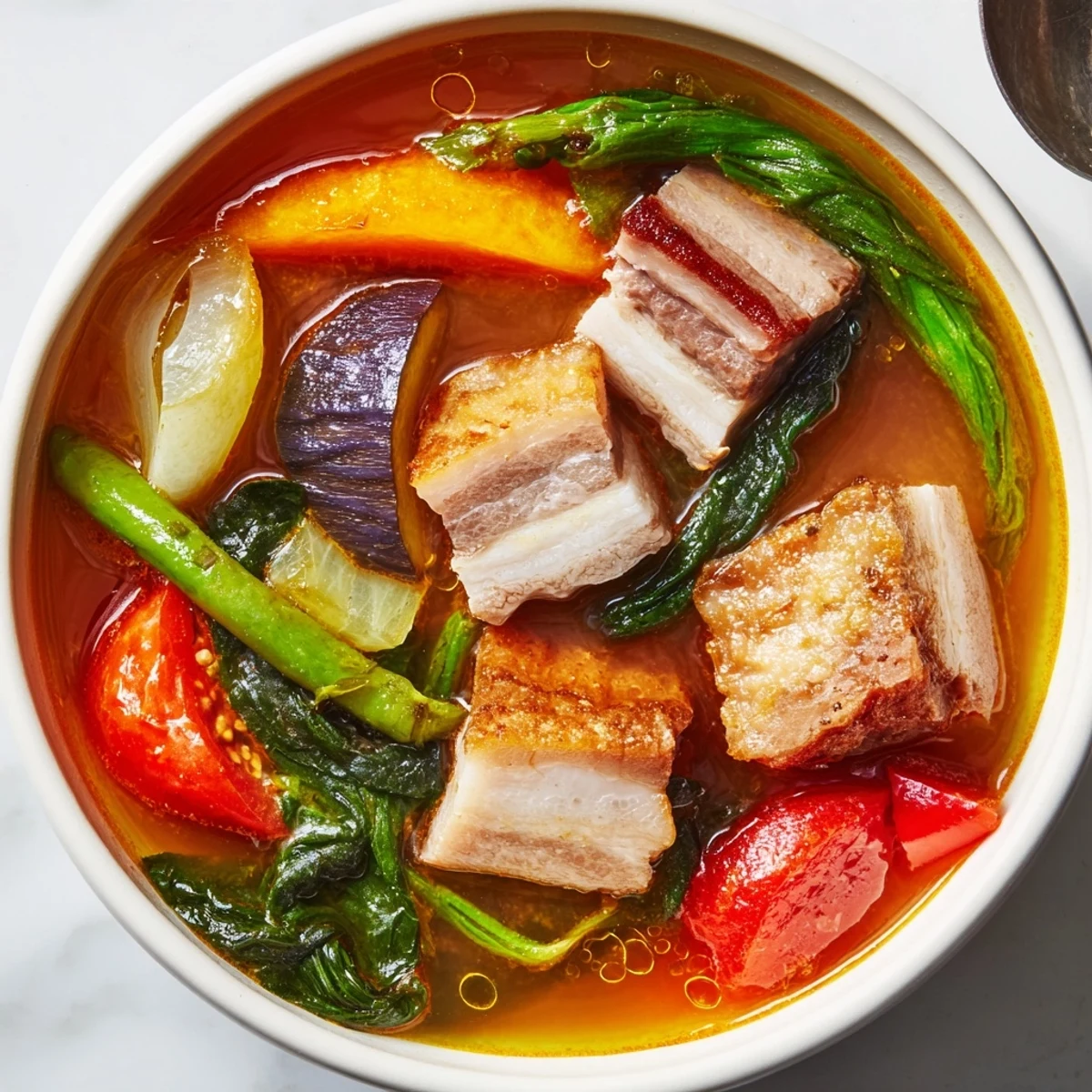 This hearty Filipino soup combines succulent pork chunks with an array of fresh vegetables in a distinctive sour broth. The tanginess comes from tamarind, creating that signature Sinigang flavor that Filipinos love. The soup is incredibly versatile - you can use pork belly, ribs, or switch to seafood like shrimp or fish for a lighter version.